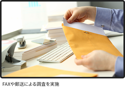 年1回、全事業所に対して調査を行います。けあプロ・naviに登録されている情報が印字された調査票を送るため、事業所は内容の確認および変更箇所を手書きで修正して返送するだけ。調査は原則としてFAXで実施しますが、医療機関などへの調査がFAXでの実施が難しい場合は郵送での調査も承ります。(印刷代・郵送代が掛かります。)